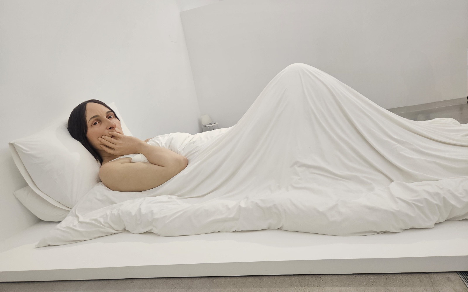 뮤익은 기억, 몽상, 일상적 경험을 바탕으로 깊은 연민을 담아 대상을 놀라운 크기로 표현한다. 30년에 걸쳐 완성된 그의 작품은 총 48점으로, 극도의 기술적 완성도와 정교한 예술적 표현이 조화를 이룬다. 전통적인 접근 방식을 유지하면서도 현대적 재료를 활용해 정밀하게 조각된 작품들은 크기의 세심한 조정과 함께 해부학적 디테일, 머리카락, 옷차림까지 정교하게 묘사할 뿐 아니라 인간의 감정 또한 생생하게 담아내는 것이 특징이다.